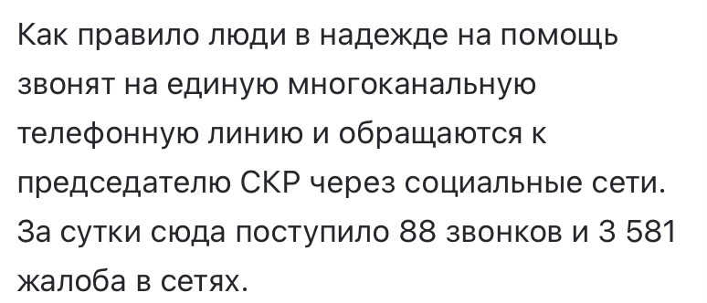 Также, телефон приемной А. Бастрыкина разрывается от звонков, потом появляются жалобы в социальных сетях: