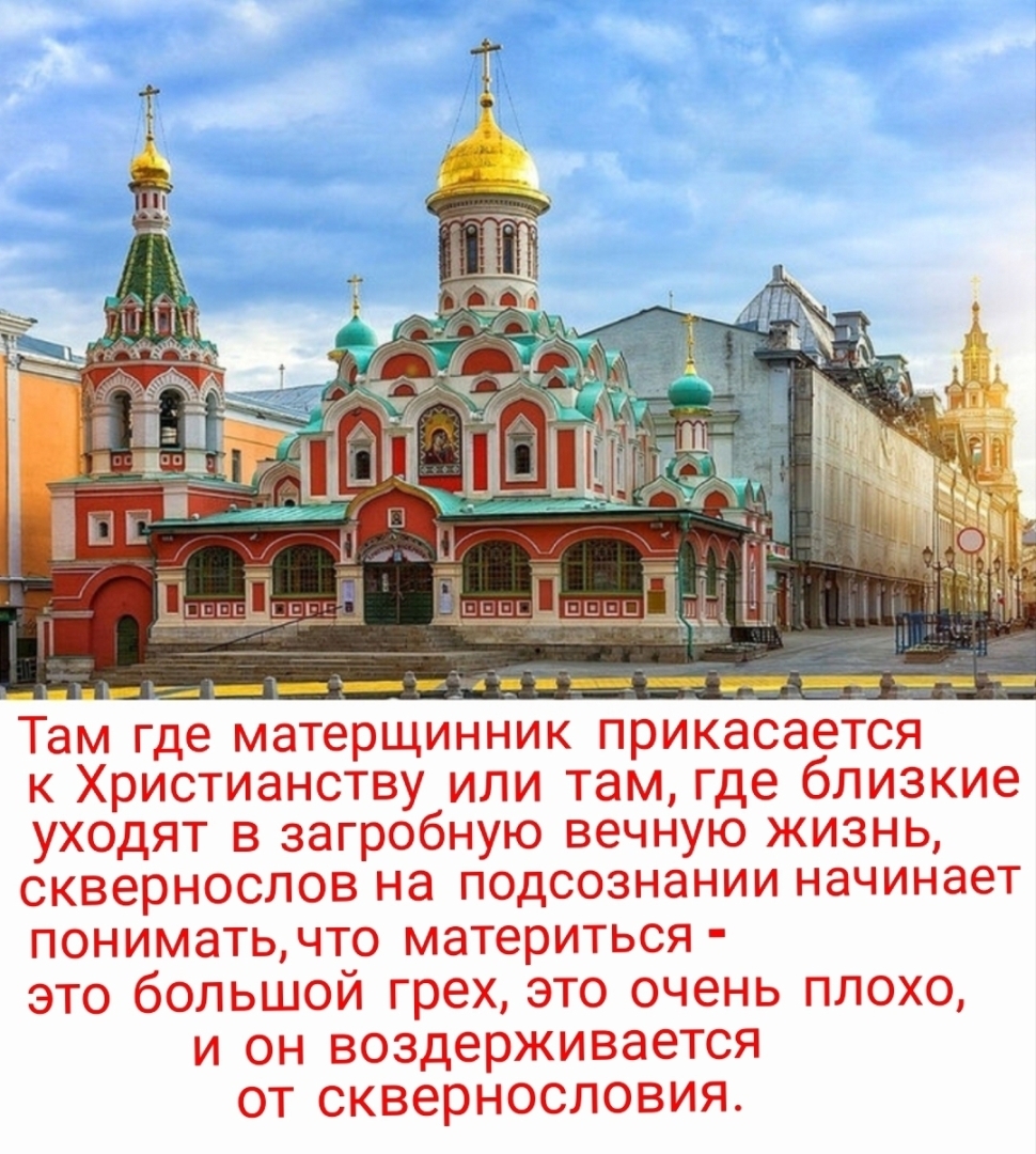 Даже самый заядлый матерщинник не будет материться в церкви ; в многодневных крестных ходах, если он решил поучаствовать ; когда стоит в многочасовой очереди, чтобы приложиться к мощам или святым иконам. Не будет сквернослов материться и на кладбище, когда провожает близких в мир иной.