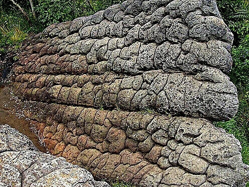 Дожди обнажили стену древнего сооружения, похожего на пирамиду