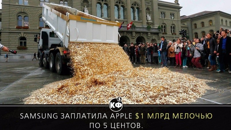 Наткнулась на старую новость, о том, как Самсунг пранкарнул Эйпл, выплатив долг монетами по 5 центов😂