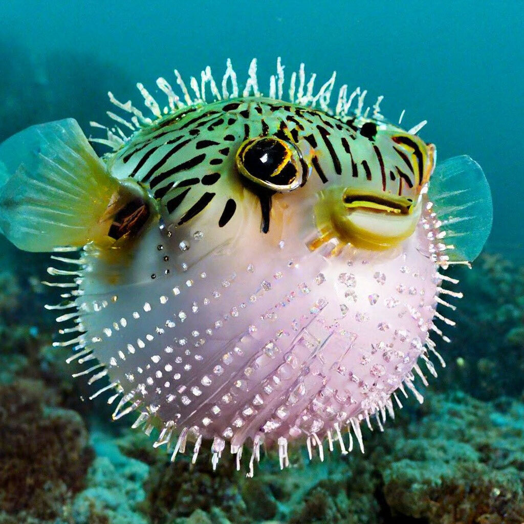 Рыба фугу — небольшая, но очень ядовитая. Ее яд — тетродотоксин, который обладает нервно-паралитическим действием — в сотни раз опаснее цианистого калия. Чтобы погубить человека, достаточно 1 миллиграмма яда. У рыбы ядовиты и внутренности (особенно печень), и кожа. На этой рыбке нет чешуи, так как в момент опасности она раздувается, и превращается в шар, покрытый шипами. И горе той акуле, которая проглотит такой шарик...