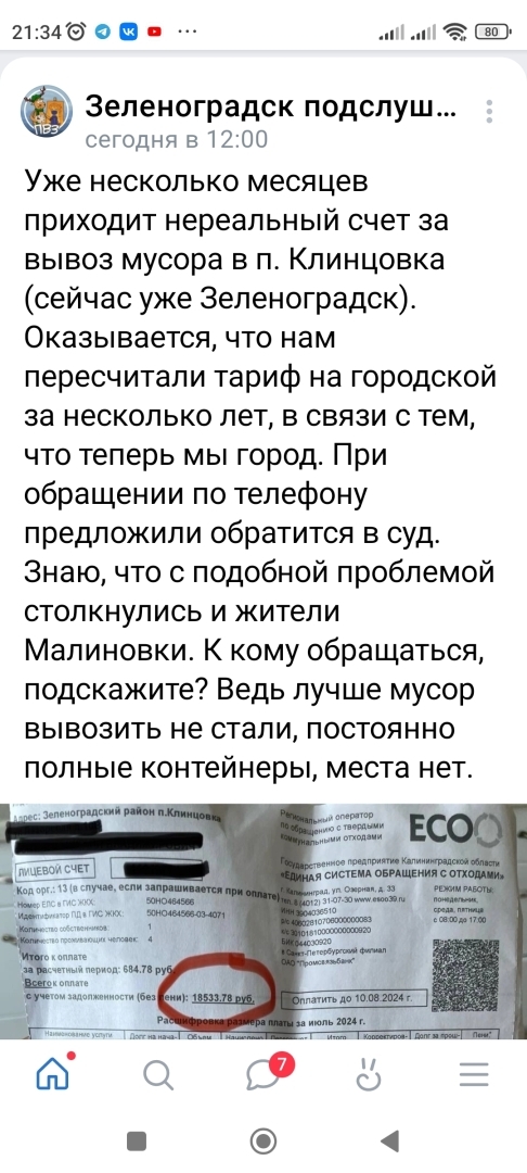 Всем приветик. Листала я тут ленту. Всех тревожил вопрос: сколько кому начислили за июль. Ведь прошло плановое подорожание. Зеленоградск побил все рекорды.