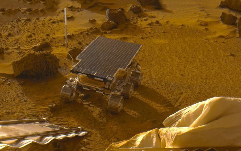 Этот марсоход носил название "Соджорнер" и был, скорее, дополнением к научной программе аппарата "Марс Патфайндер", чем тем марсоходом, которые мы привыкли видеть сегодня. На нём стоял всего один научный прибор, но перед стационарным зондом у него было главное преимущество - он мог передвигаться, и это очень активно использовалось.