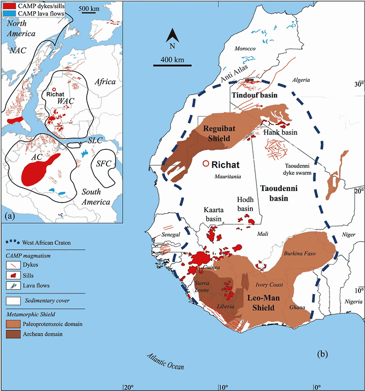 Анализы показывают, что геохимический состав габбро соответствует наиболее распространённым химическим группам в CAMP. Во-вторых, новые магматические породы, в том числе богатые углеродом карбонатиты и щелочные породы, сформировались глубоко внутри структуры, прежде чем подверглись значительной эрозии.