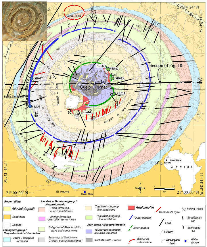 Структура Ришат в Мавритании, которую некоторые теоретики считают местом расположения мифической Атлантиды , является одним из наиболее заметных из космоса геологических образований.