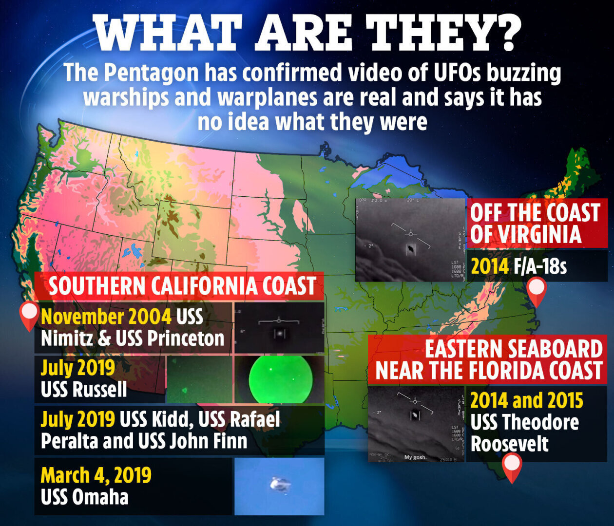 Пентагон предоставил The Sun Online видео, показывающее загадочные объекты, кружащие над военными судами у побережья США.