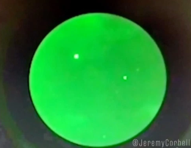 Несколько загадочных мигающих объектов в небе были запечатлены эсминцем ВМС США с помощью камер ночного видения