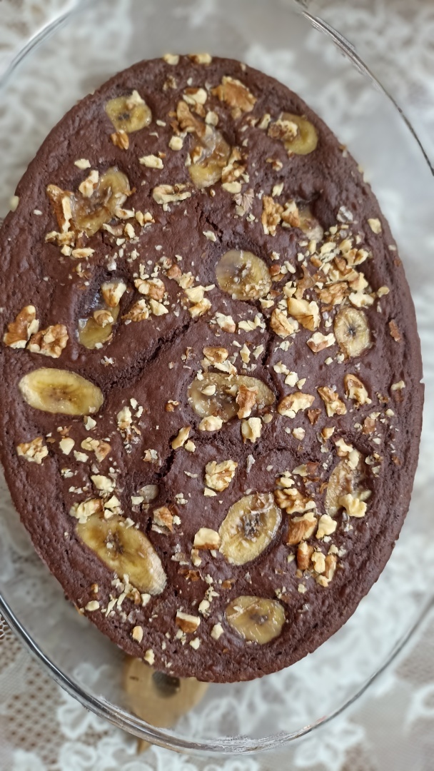 Очень вкусный шоколадный десерт с бананом и грецкими орехами