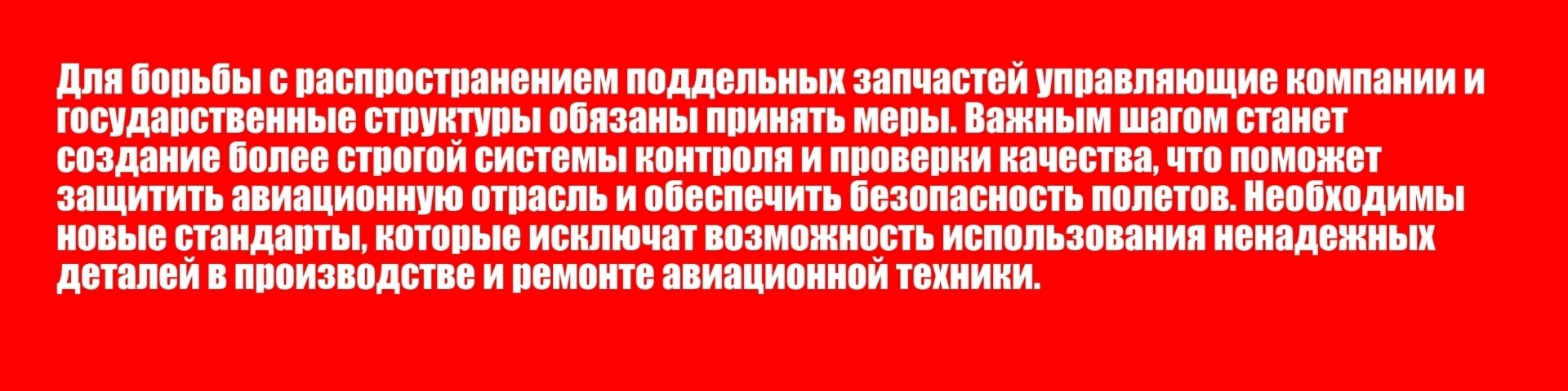 Управляющие компании и государственные структуры должны принять меры для противодействия распространению поддельных запчастей. Создание более жесткой системы контроля и проверки качества станет важным шагом в защите интересов авиационной отрасли и обеспечении безопасности полетов. Необходимо разрабатывать и внедрять новые стандарты, которые исключат возможность использования ненадежных деталей в производстве и ремонте самолетов.