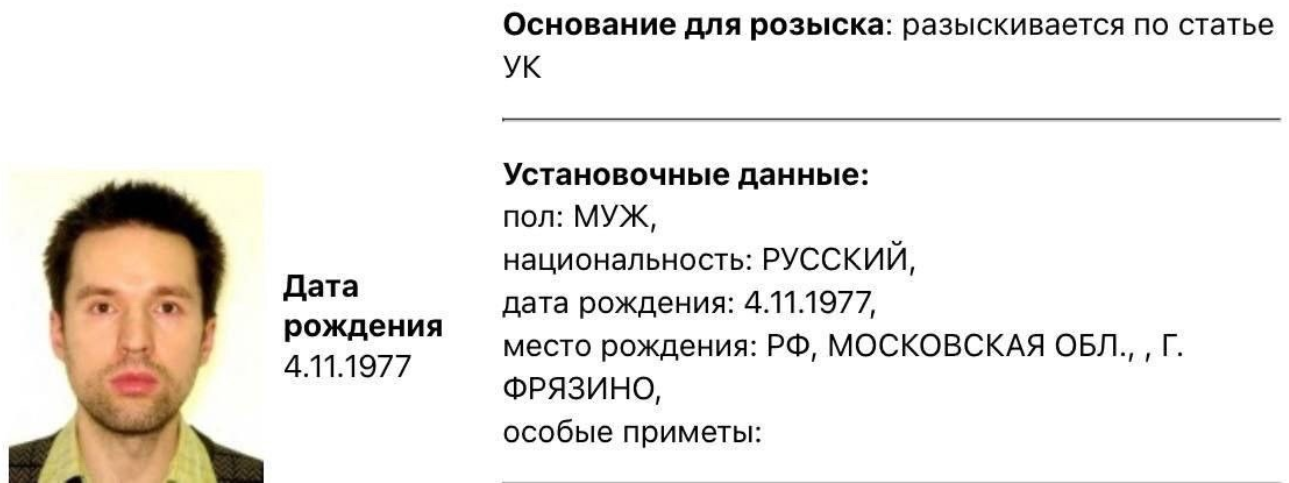 В базе МВД появились данные о розыске бывшего замглавы антидопинговой лаборатории Соболевского Тимофея Геннадьевича.