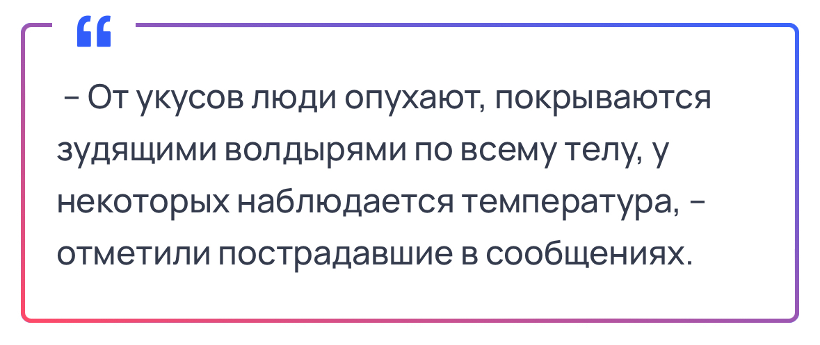 многие туристы узнают о вредителях только по прибытии на отдых, когда начинается «сущий ад». После укуса люди опухают, у них появляются зудящие волдыри по всему телу. Температура у некоторых повышается. Туристы рекомендуют пользоваться кокосовым маслом, чтобы избежать таких неприятностей