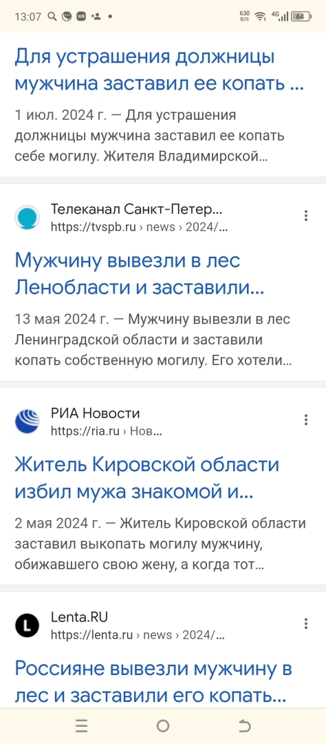 Открыть только гугл с запросом " заставили копать могилу " и куча ссылок ...