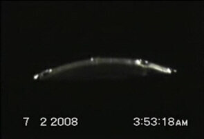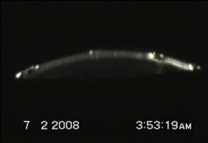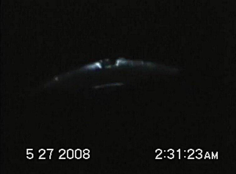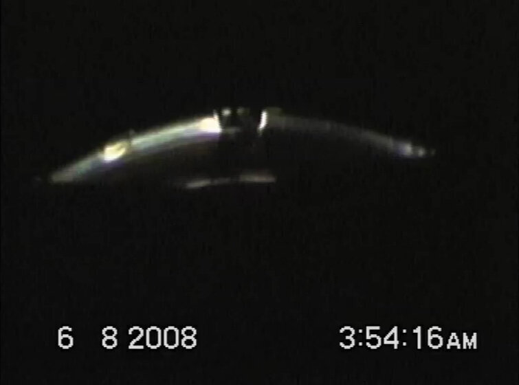 Только через четыре дня сначала наблюдался еще один оранжевый светящийся шар. Вскоре после этого был снят корабль, изображенный ниже. По-видимому, возможно горизонтальное движение, вызывающее смещение света и тени в структуре.