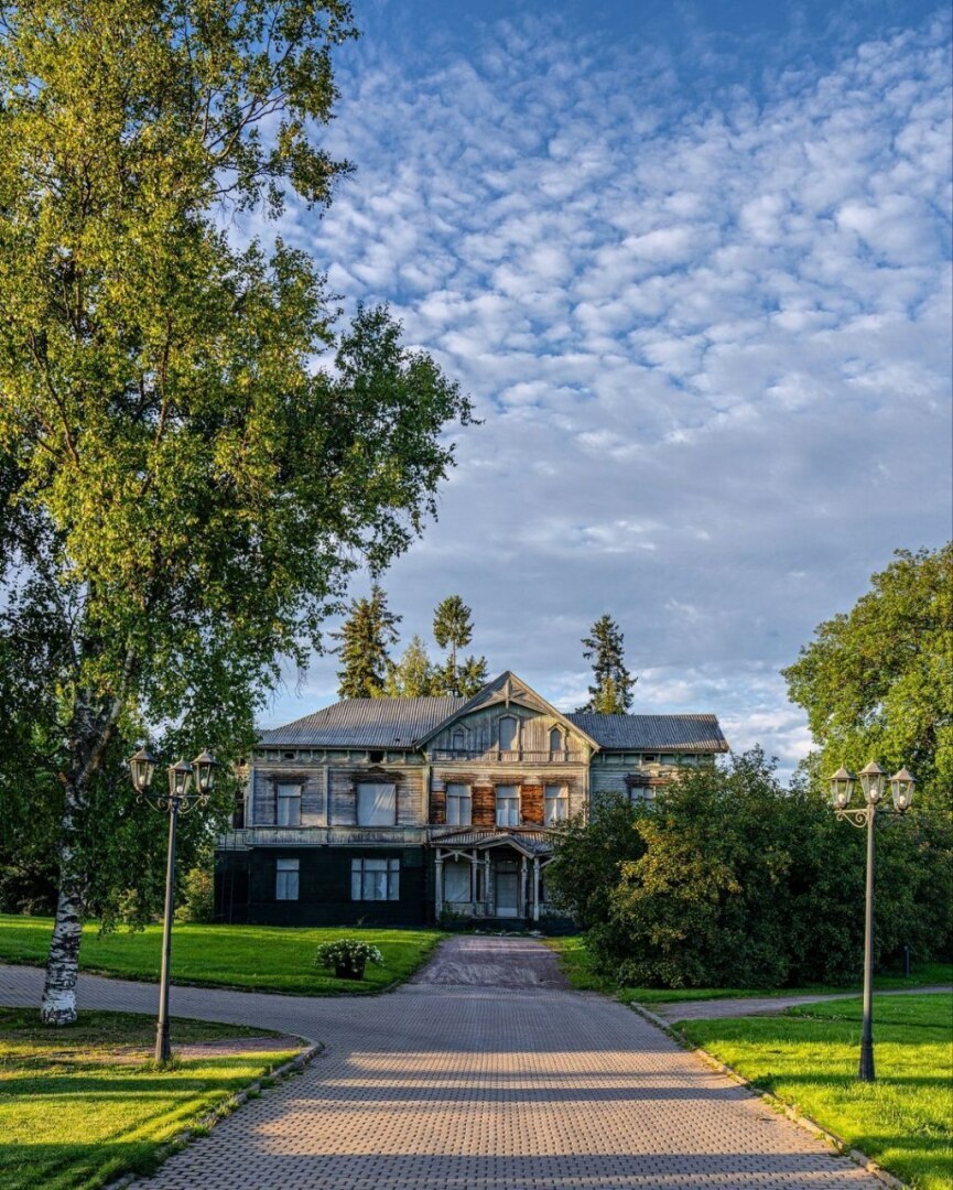 В главном доме не живут, ему требуется реставрация. Когда-то у дома в стиле «северный модерн» была ещё романтичная башенка, до наших дней она, к сожалению, не дожила.