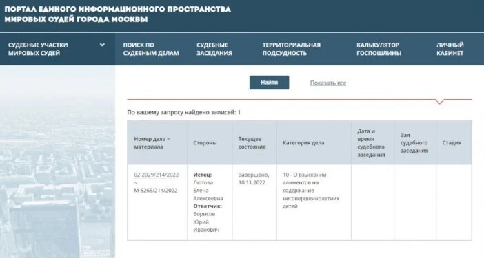 Лютова не раз публично упрекала Борисова в неуплате алиментов. В 2022 году мировой суд Ломоносовского района Москвы вынес решение о необходимости выплаты алиментов Борисовым. Тем не менее, вместо того чтобы исполнить судебное предписание, Борисов инициировал встречный иск в Гагаринском суде, пытаясь оспорить свои отцовские права.