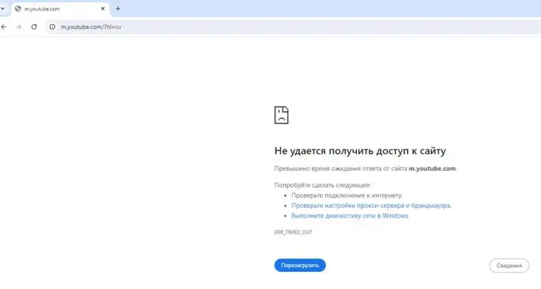 Полная недоступность сервиса. Некоторые пользователи не могут зайти на YouTube вообще, как в веб-версии, так и в мобильном приложении.