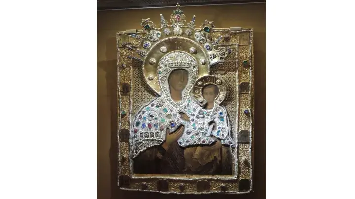 Икона "Одигитрия" - одна из самых почитаемых в православной традиции. Ее название происходит от греческого слова "οδηγητρία" (odigētría), что означает "показывающая путь". Легенда гласит, что эта икона была написана евангелистом Лукой по просьбе Пресвятой Богородицы, а затем находилась в Иерусалиме. Считается, что икона чудесным образом спасла город Константинополь от нашествия врагов