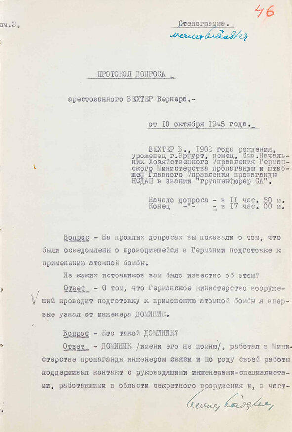 Вернер Вехтер, близкий соратник министра пропаганды Йозефа Геббельса и руководитель генерального реферата вооружения и строительства, обладал глубокими знаниями о секретных разработках Третьего Рейха. Его показания, полученные во время допроса советскими следователями, стали ценным источником информации о тайных исследованиях Германии в области ядерного оружия.