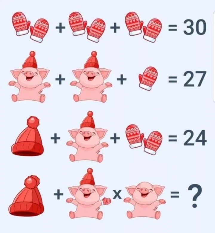 Еще одна задачка с тремя неизвестными: свинка в шапке и варежки. Получилось решить?