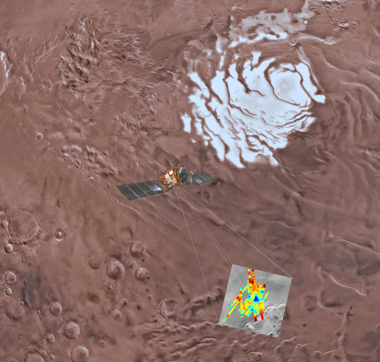 Наличие водяного льда под поверхностью, а также его взаимодействие с углекислым газом и другими минералами, создает условия для микробной жизни и потенциальных биогеохимических процессов. Существующие на Марсе полярные шапки содержат значительные объёмы льда, что может быть как источником информации о климате планеты, так и ресурсом для будущих марсианских исследований и колонизации.
