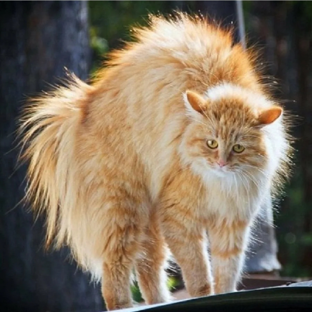 8.Кошки могут грозить другим животным, подняв шерсть на загривке и делая себя визуально больше.