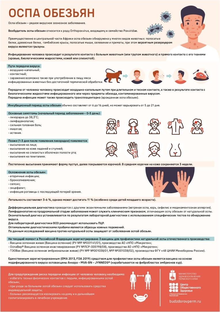 Обезьянья оспа является относительно редким, но потенциально опасным заболеванием, вызываемым одноимённым вирусом. Основные симптомы включают повышение температуры, головную боль, боль в мышцах, озноб, усталость и характерную сыпь на коже. Болезнь чаще всего протекает в лёгкой форме, но у людей с ослабленным иммунитетом может вызвать более тяжёлые осложнения.