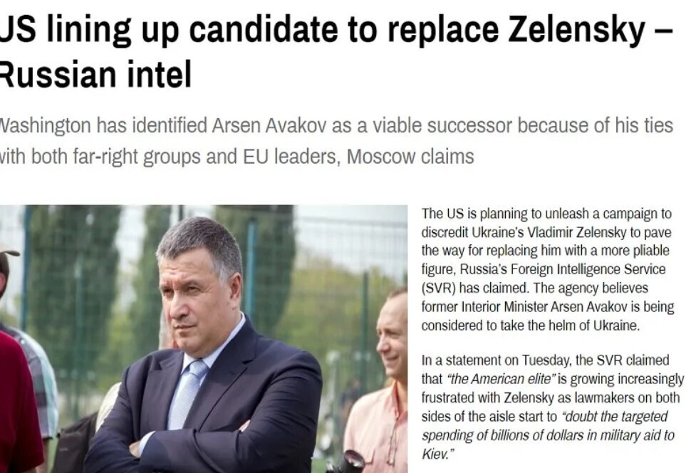 Российская служба внешней разведки СВР опубликовала очередной доклад о якобы грядущих политических изменениях в Киеве, на этот раз утверждая, что США рассматривают бывшего министра внутренних дел Украины Арсена Авакова в качестве потенциальной замены Зеленскому. Соответственно, они приказали связанным с ними неправительственным организациям подготовить информационное пространство для содействия его приходу и якобы работают с оппозиционерами с этой целью. Этот последний доклад следует за несколькими прошлогодними, которые пока не реализовались:
