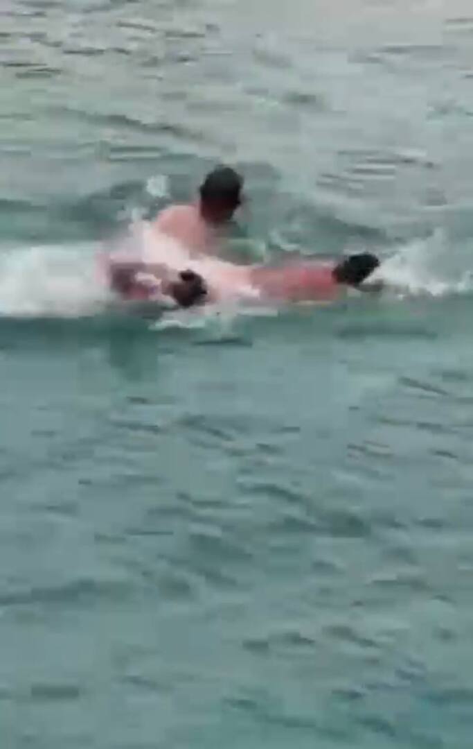 Ну надо же... А зрители думали, что она его сначала зажарит., а потом польет томатным соусом и воспользуется вилкой и ножом... Обманула ожидания туристов((((((( Совершенно невоспитанная акула попалась!