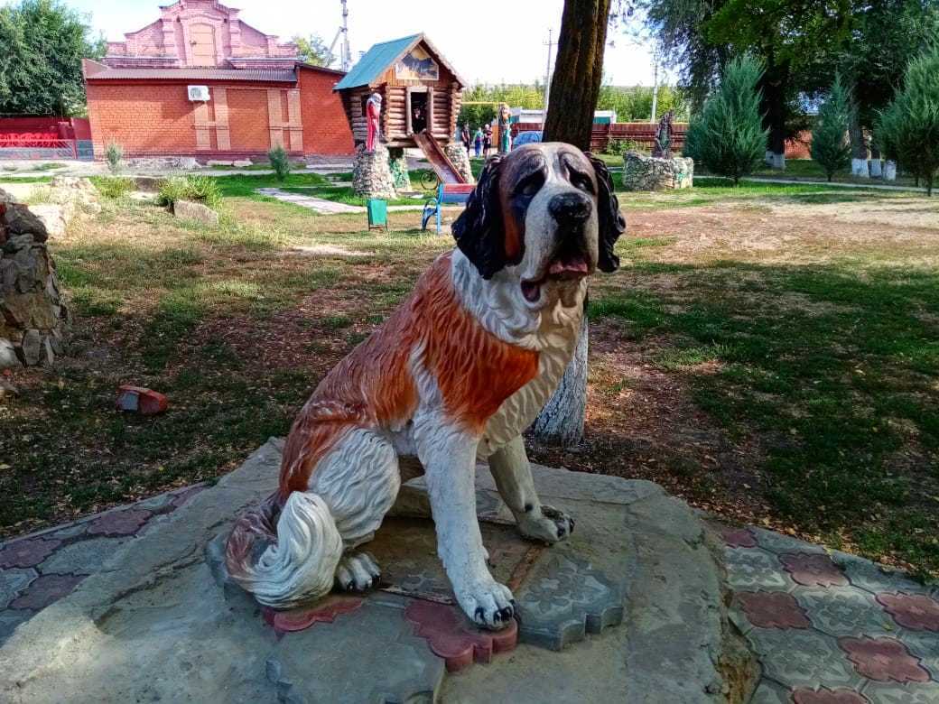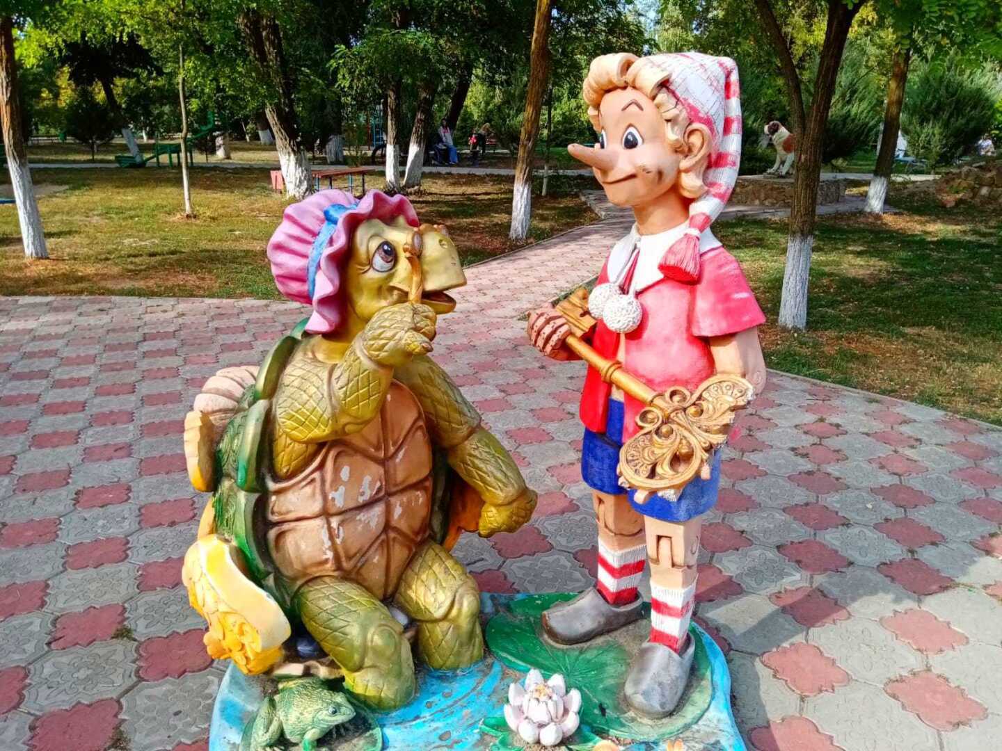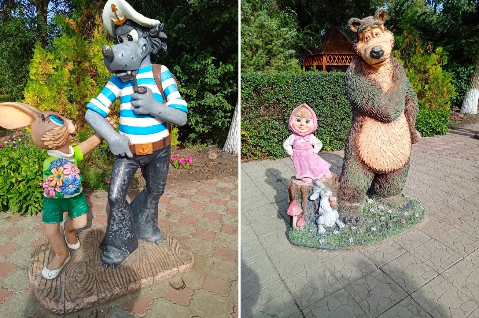 Здесь много зелени, клумб с цветами и детский городок с многочисленными разноцветными скульптурными композициями.