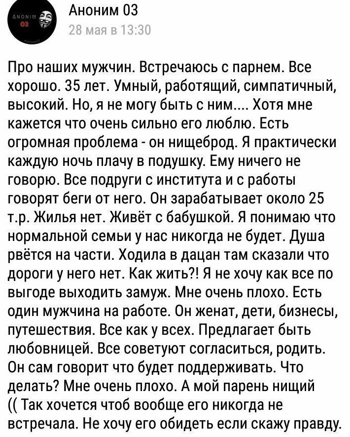 Согласитесь: какой же этот парень нищеброд. Квартира в Москве после бабушки останется парню. Господь любит терпеливых!