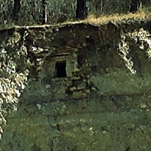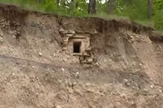 В 2014 году появилась коротенькая информация о находке в горах Ингушетии, в Джейрахском районе то ли гробницы, то ли пещеры... При дорожно-строительных работах сверху осыпался скальный грунт и обнажился вход в неизвестное помещение, подняться куда можно было только с помощью альпинистского снаряжения... В скудной информации высказывалась версия, что это, якобы, захоронение Царицы Тамары... Судя по очень редким фото вход и стены выложены ровными, отлично обработанными плитами, видно, что работа проведена тщательная и солидная... Предположено, что возраст "захоронения" 5-6 век, но что-то слабо верится... Ведь эта "пещера" практически была погребена в стене ущелья и возраст тут может быть любой - и 10 000, и 100 000 лет... На фото ниже, можно рассмотреть деревья над "пещерой" и довольно большой слой земли, а если присмотреться, то ниже видны две горизонтальные полосы, ооочень похожие на основание или фундамент, чего? Здания?! Тогда это не пещера, а какое то погребённое неизвестно когда сооружение ?