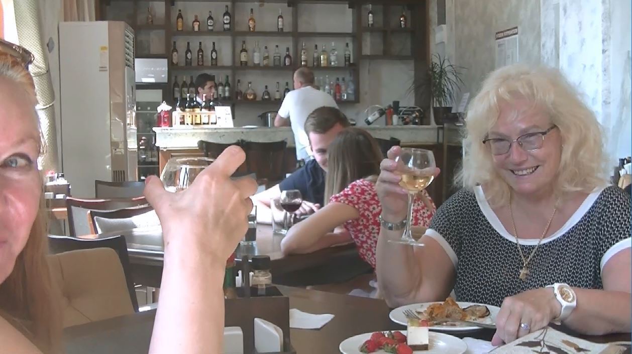 С нами у столиков находились очаровательные туристы из Санкт-Петербурга. Мы с ними выпили за знакомство, и вскоре за нашим столом завязался непринужденный разговор. Они рассказывали о своём городе – о величественных дворцах, сверкающих на солнце, о загадочных улочках, полных истории, и о белых ночах, когда город словно уплывает в сон, оставляя только легкие воспоминания о прошедшем дне.