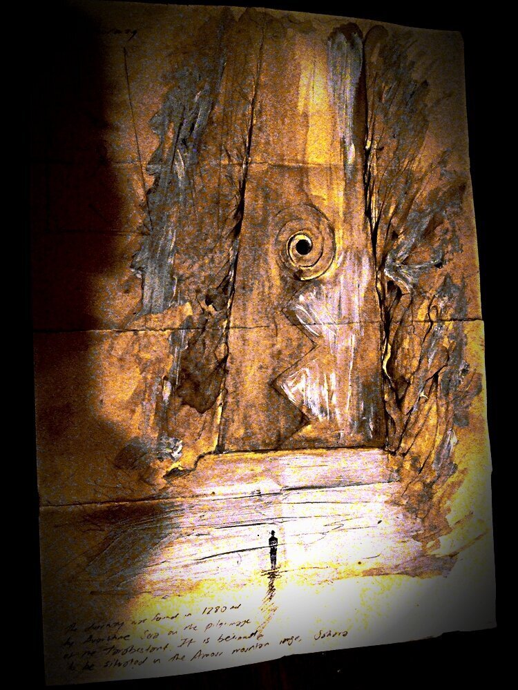 «Камень уступил место тому, что казалось живой плотью, камнем или водой. Он изменился по мере того, как изменилось мое мнение, когда я осознал, что существует то, чего я боялся или чего хотел. Пространство наполнено светом. Я действительно чувствую здесь близость к моему богу. Я чувствую, что залез в его рот и исчез для всего мира. Пророк Кальмаридиф нашел здесь свою семью, мать и отца. Я умру здесь, зная, что прикоснулся к лику бога ».