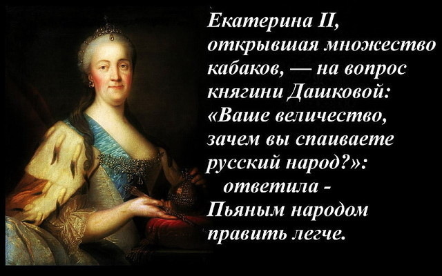 «Пьяным народом править легче» (Екатерина II )