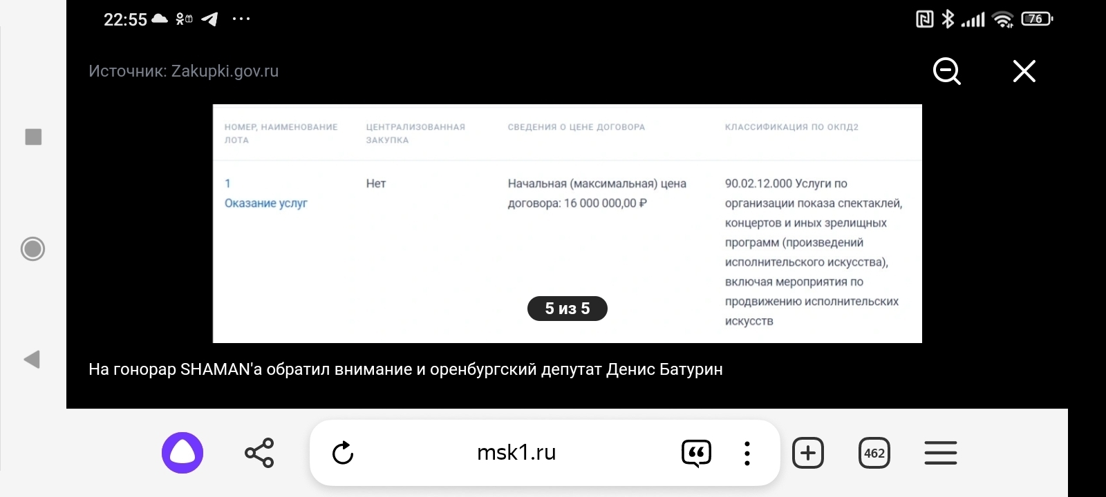 ты чо такая завистливая? Не помню точно, недавно, Газманову что ли - так же выплатили почти 9 лямов за такое же выступление ..ЭТО решают власти , к ним и вопросы, кстати, уже подняты.. Что ты прицепилась к Шаману, единственному, почти - кто гордиться РОССИЕЙ , песни патриотические , а не кривляется с голой опой и под фанеру рот раскрывает без слуха и голоса..