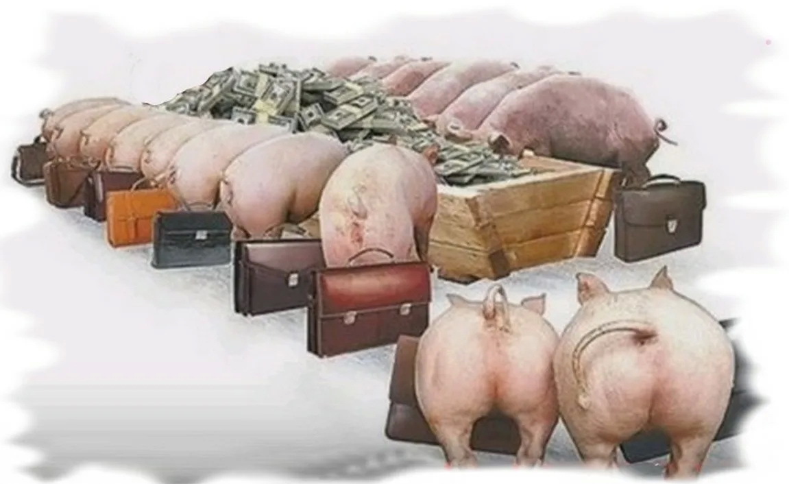 Чужое горе и страдания им абсолютно по барабану, они пляшут и поют, подсчитывая доходы. А "птица в перьях" , однозначно ассоциируется с петухом.