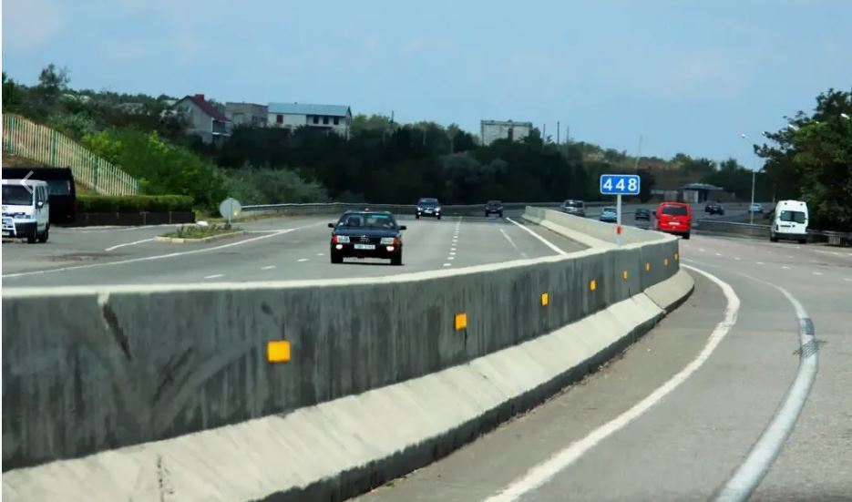 Как в цирке. Всё рассчитано. Я, например, видел Газельку, стоящей вот на такой штуке. Очень ровненько, как-будто специально сбалансированная. Как она называется, эта штука? Кто говорит, что это разделитель, кто-то называет отбойником.