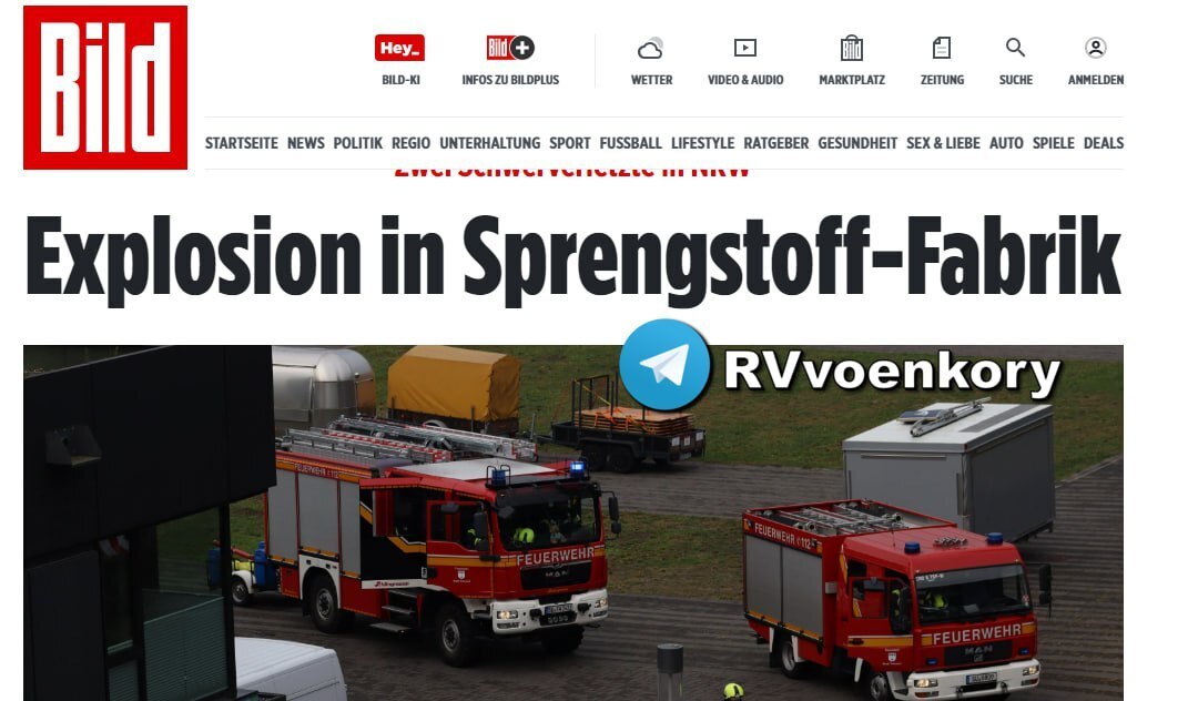▪️Немецкий завод взрывчатых веществ немецкой компании Diehl Defence получил значительные повреждения в результате взрыва, пишет Bild.