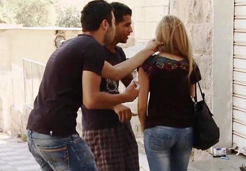 В России с этим получше, явных домогательств при наших мужчинах не фиксируется, а вот изнасилований общее количество совершенных мигрантами растёт, но если наши мужчины становятся свидетелями такие преступлений то обязательно вмешиваются, а это не может не радовать)