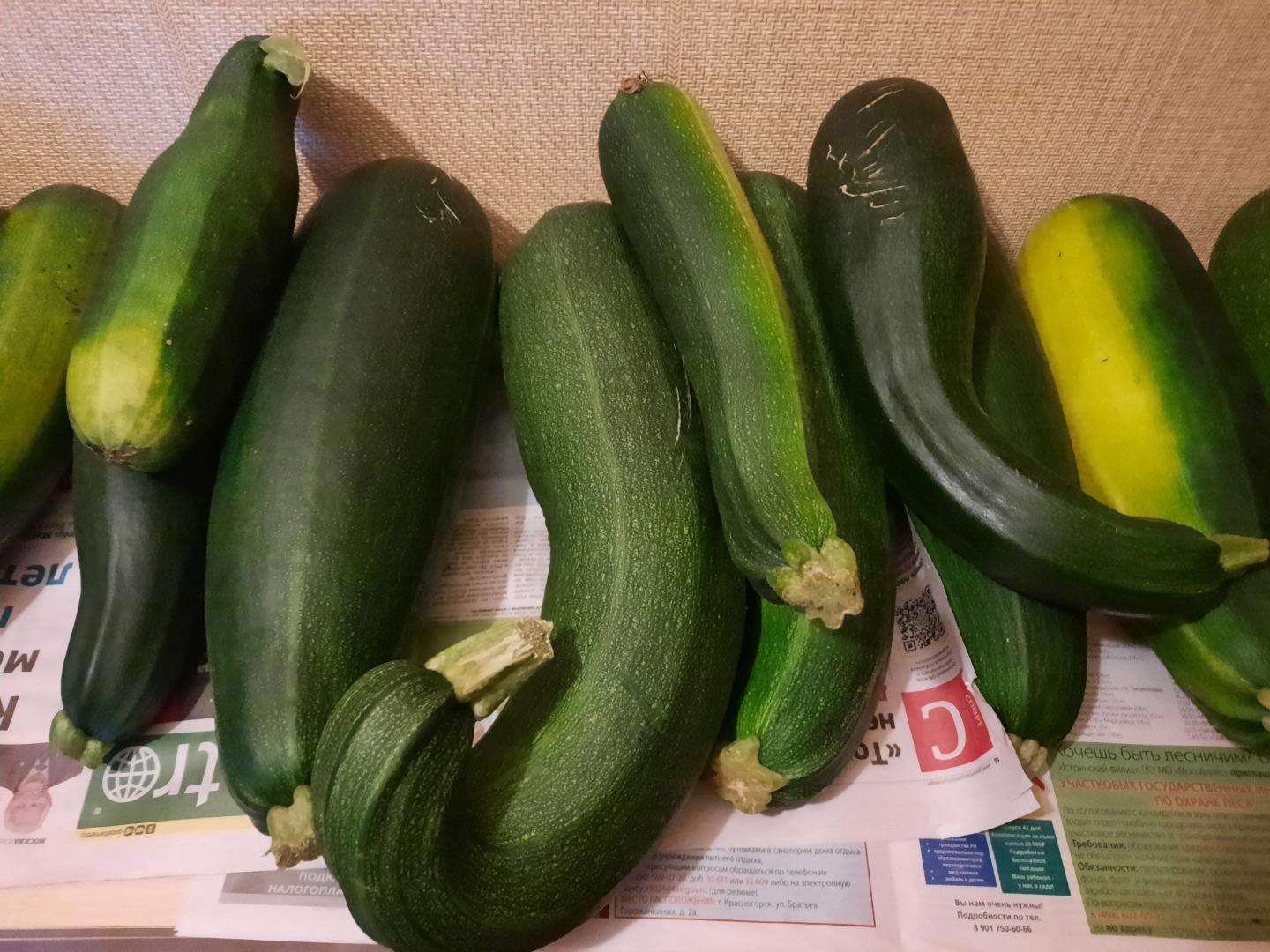 Недавно привезли очень много кабачков с дачи. У нас в коридоре несколько комодов на всю длину коридора, вот и складываем кабачки. Еще до середины сентября на даче вырастут, привезём домой.