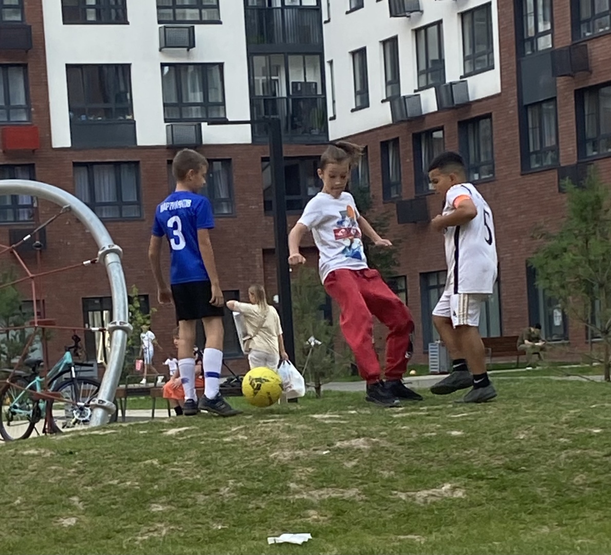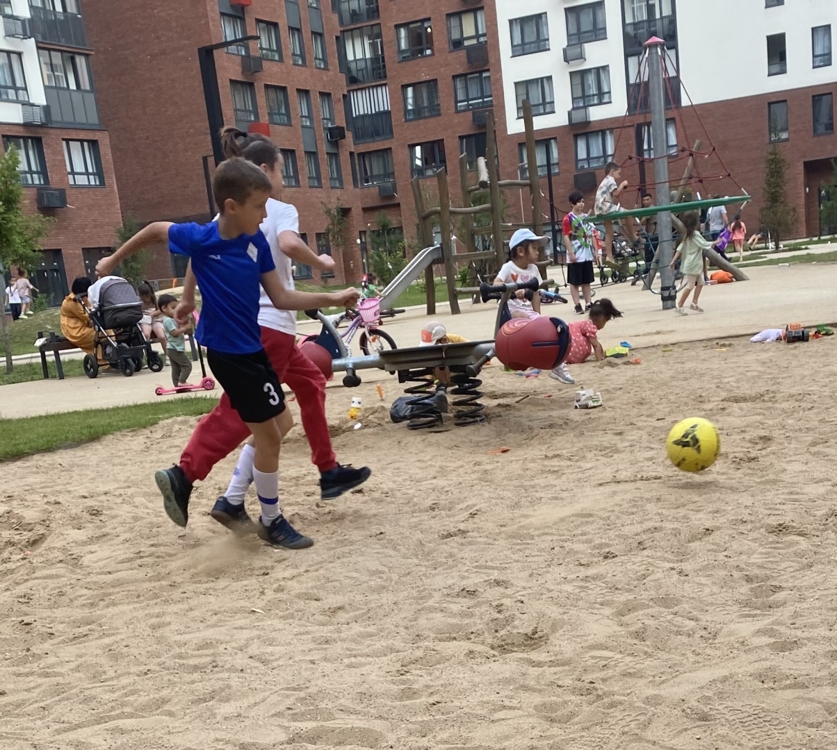 А где играть детям постарше? У нас только детская площадка, а места для игры в футбол нет. Кстати, раньше на месте этой площадке было поле, где дети играли в футбол или в волейбол. В общем надо находить компромисс, чтобы и малыши могли играть и дети постарше