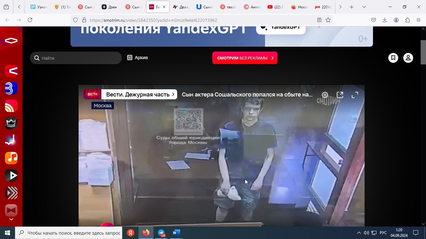 В общем, сын очень известного артиста Владимира Сошальского арестован. Статья тяжкая. Ему грозит 20 лет тюрьмы.