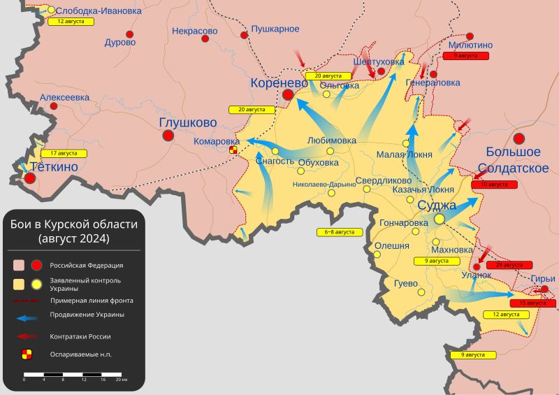 согласна! В связи с боевыми действиями в Курской области действуют режимы контртеррористической операции и чрезвычайной ситуации федерального масштаба, отселен ряд муниципалитетов, ограничен въезд в атомград Курчатов. 1 сентября пресс-секретарь президента Дмитрий Песков в интервью журналисту телеканала «Россия» Павлу Зарубину сообщил, что российские военные уже начали реагировать на атаки ВСУ на приграничные территории, включая Курскую область.