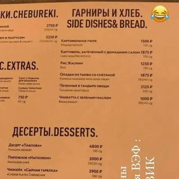 Но есть и более «спокойные» цены. Как вам полный обед за 12 300? Да, владельцы этого ресторана оказались не жадными.