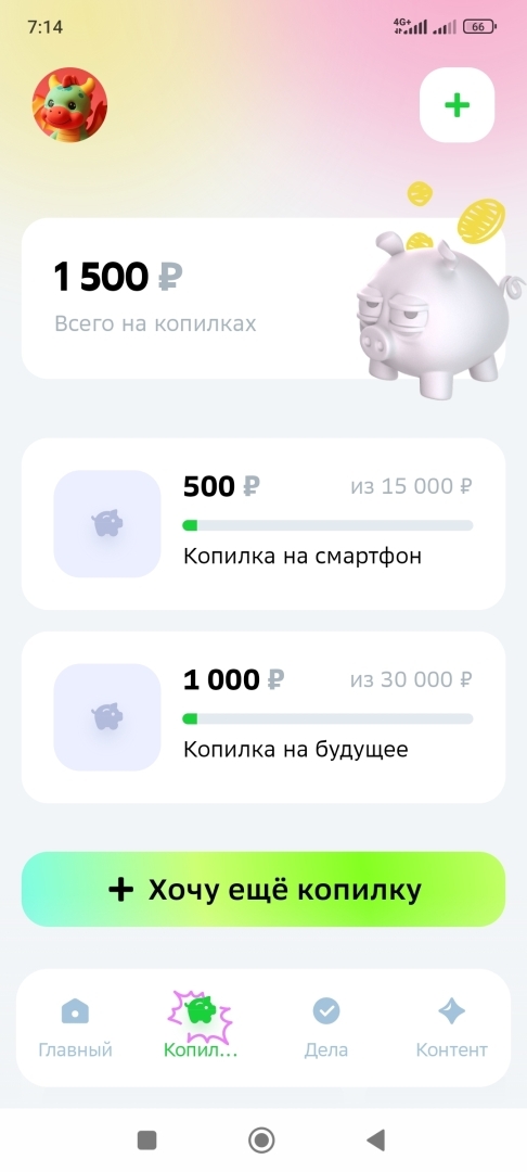 Зашла в СберКидс - детский мобильный банк. И открыла ему 2 копилки. Одну на счастливое бу. Другую на смартфон.