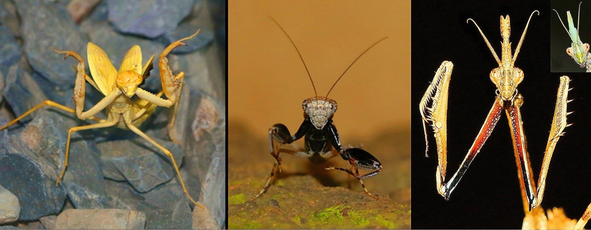 В качестве примера можно привести несколько доисторических пиктограмм на юге Африки, изображающих «людей-богомолов» с телами полубогомолов.