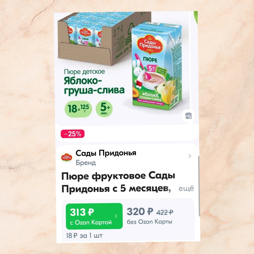 Например, пюре любое, оно на озоне продаётся в коробках (один пакетик по 18 рублей).