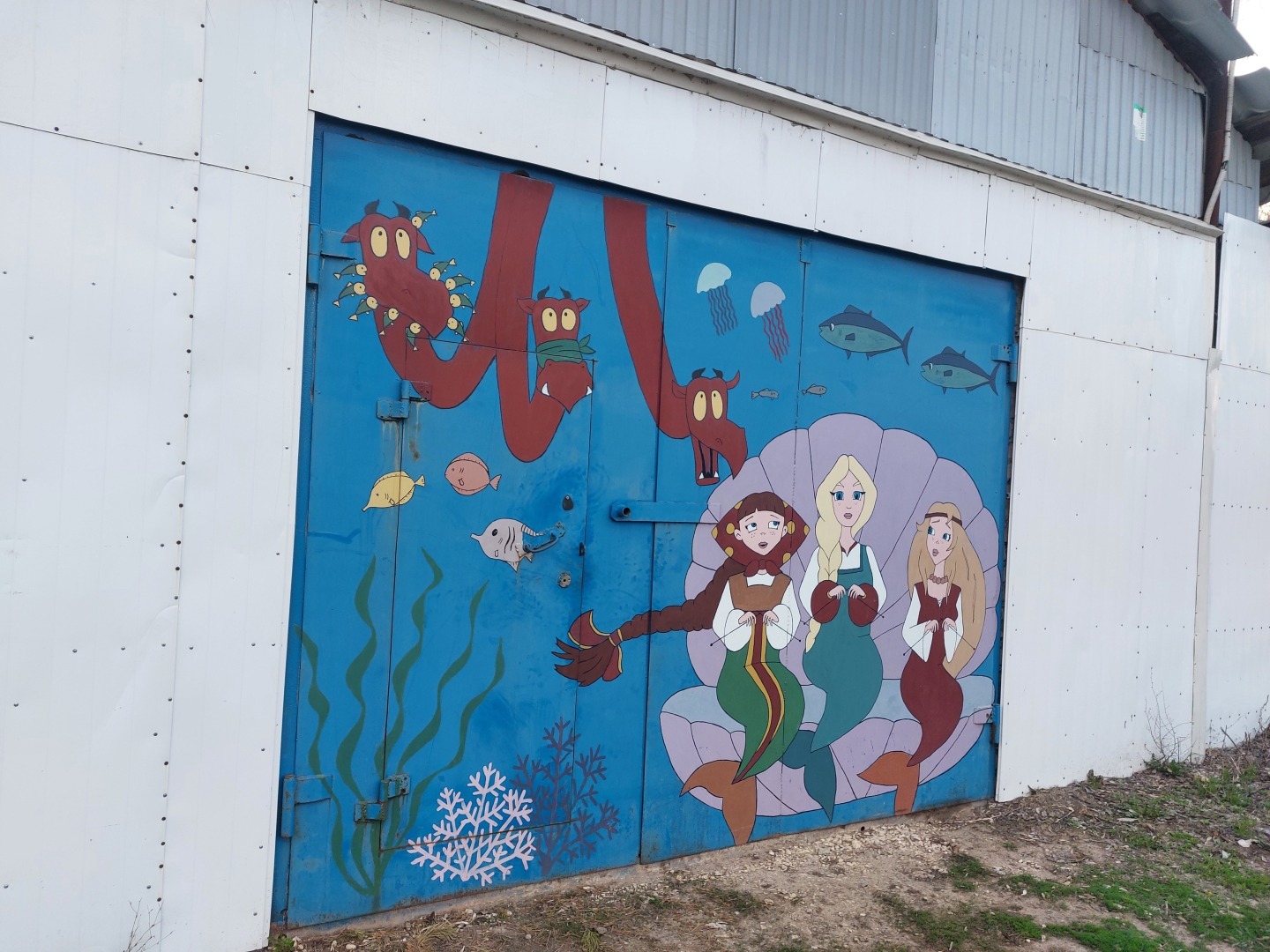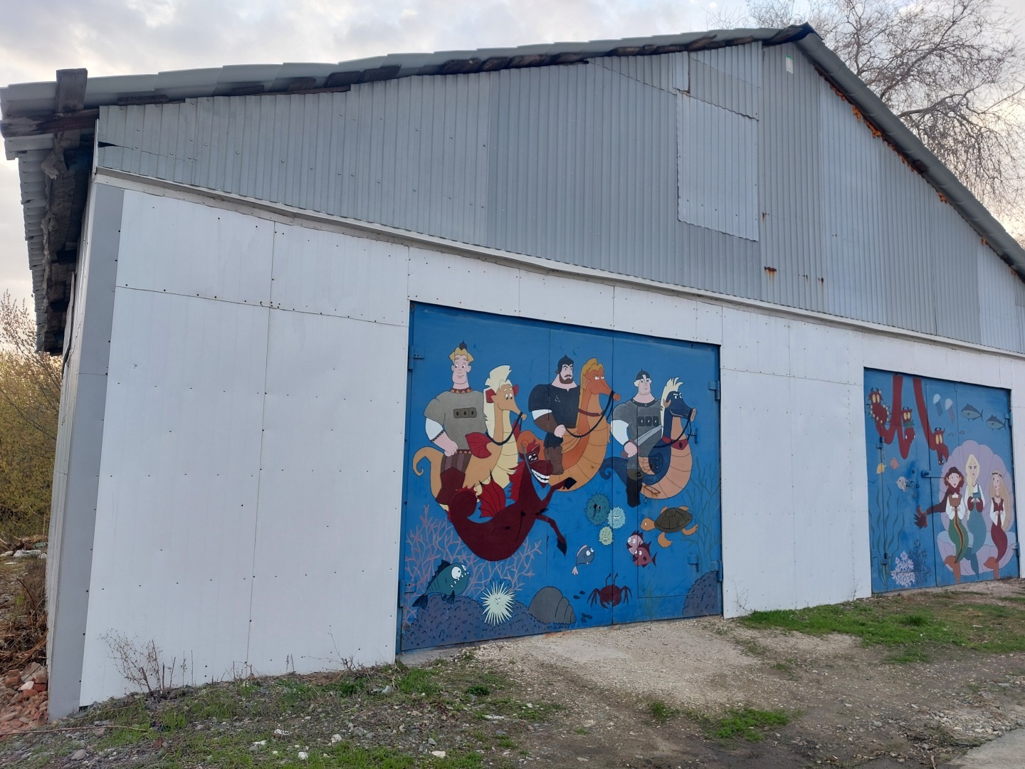 Иду я как то по работе через гаражи (так была дорога короче и быстрей). И уже подходя к дороге, встретил вот такой шедевр на воротах одного из гаражей. Полюбовавшись на знакомых мне персонажей одного российского мультсериала, решил запечатлить их на камеру телефона. Вот такие снимки получились (фото оставляю внизу).