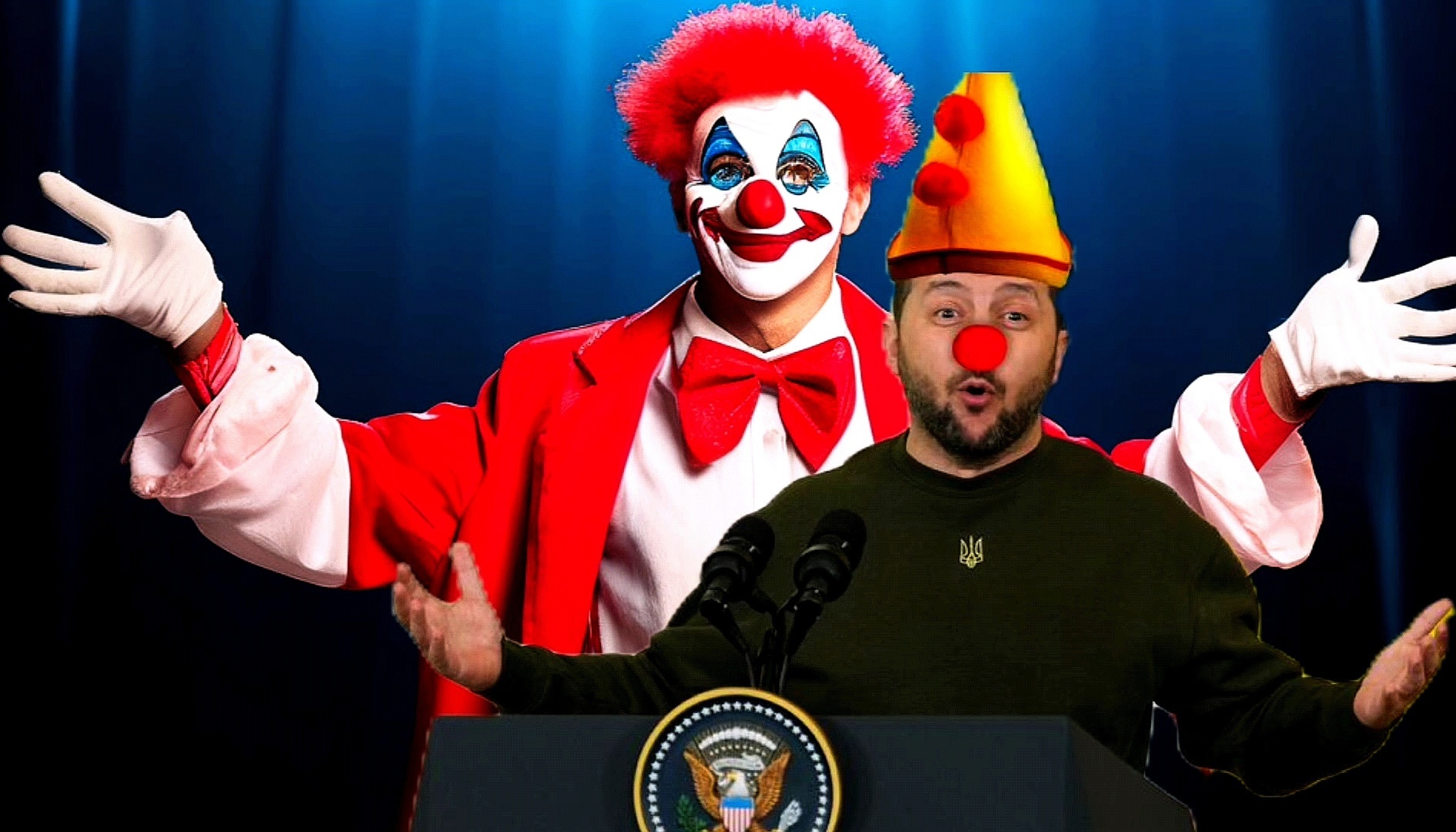 И вот сегодня на американской авиабазе "Рамштайн", Германия, на очередной сходке западных покровителей, киевский клоун предложил, что этой осенью военный конфликт должен быть закончен. И что это окончание поможет восстановить:
