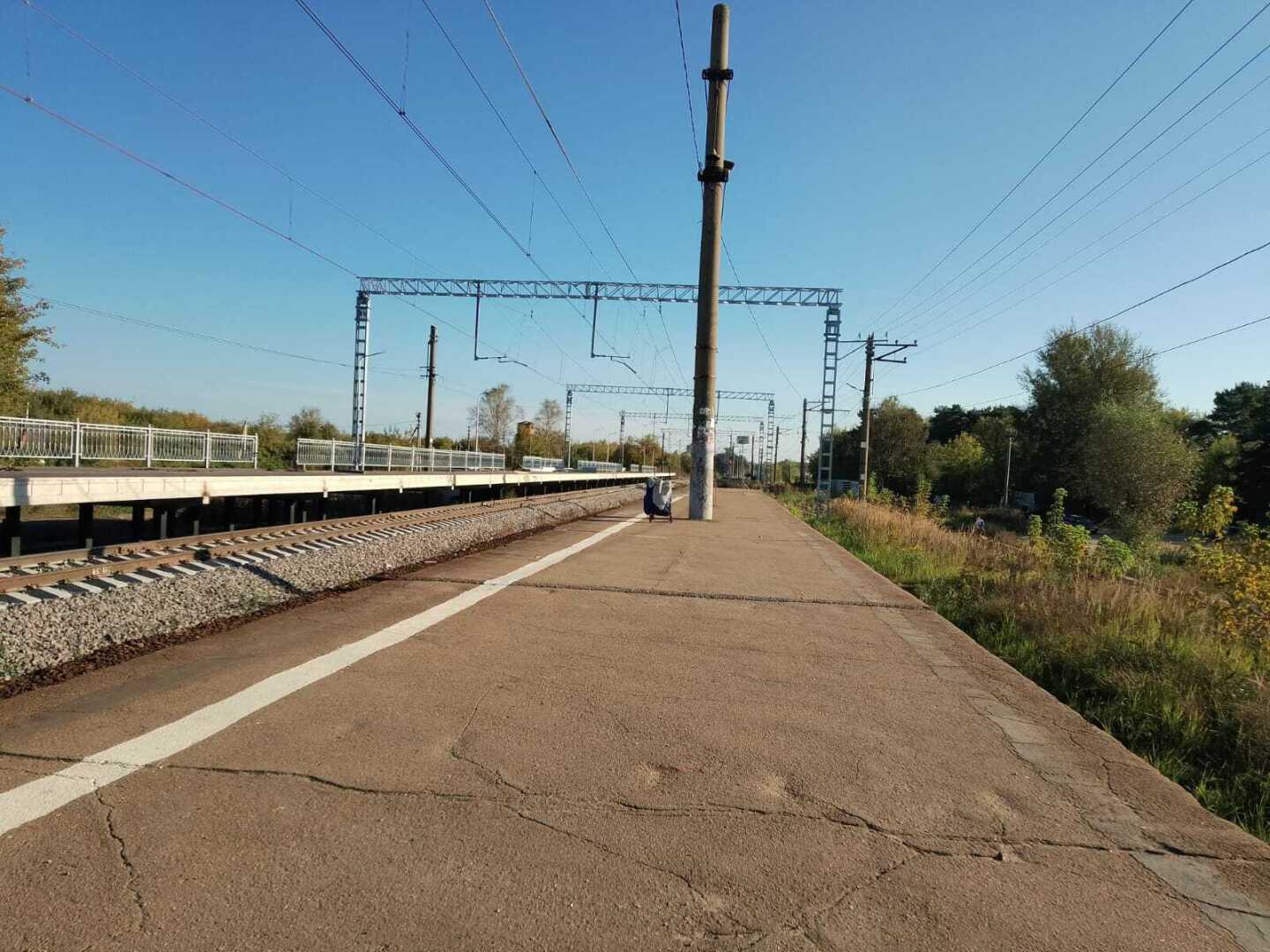 08.09.24. Уезжаем домой. Постольку в этой глуши электрички едут раз в три часа, быстро добираемся на самокатах и оказываемся на платформе чуть раньше. Раннее утро прекрасно! Солнышко светит, на небе ни облачка.